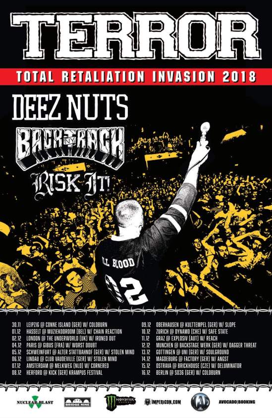 Terror have announced a European/UK tour with Deez Nuts, Backtrack, and Risk It. The band will be touring in support of their new album “Total Retaliation” (out September 28).
