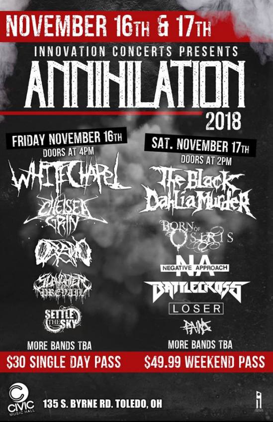 The initial lineup has been revealed for the 2018 Annihilation festival. That event will take place on November 16-17 at the Civic Music Hall in Toledo, OH and it will include the following: