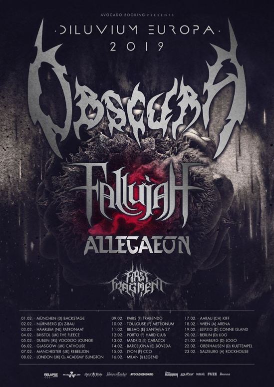 Obscura have announced a headlining European/UK tour. Fallujah, Allegaeon, and First Fragment will serve as support.
