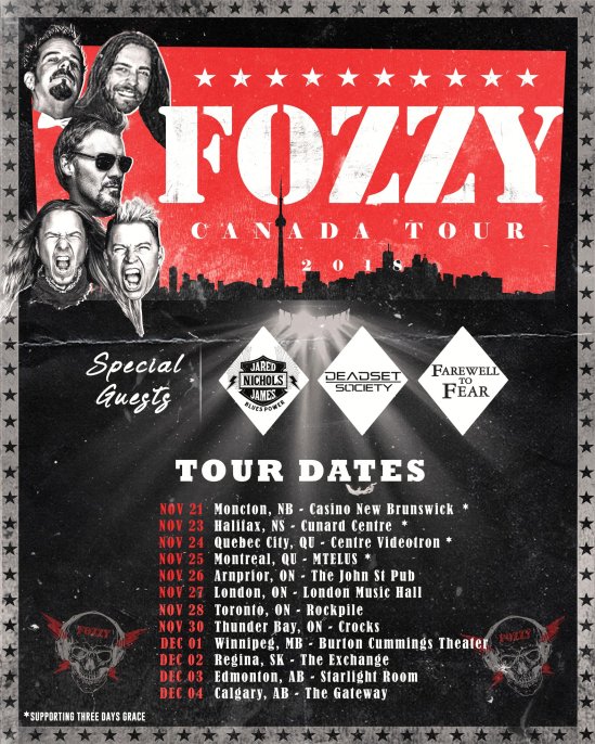 Fozzy have announced a headlining Canadian tour. These dates will follow the band’s upcoming shows supporting Three Days Grace and Deadset Society, Jared James Nichols, and Farewell To Fear will serve as support.