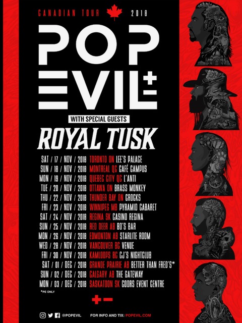 Pop Evil have announced a headlining Canadian tour. Royal Tusk will serve as support.