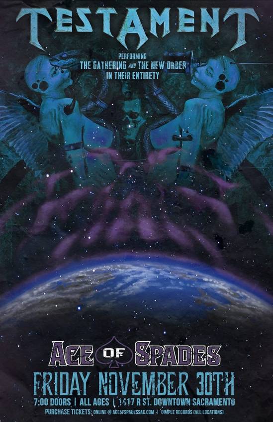 Testament have announced that they will be performing “The New Order” and “The Gathering” during a special show in Sacramento, CA. The concert will take place at the Ace Of Spades on November 30.