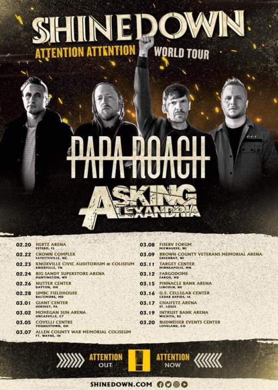 Shinedown, Papa Roach, and Asking Alexandria will be hitting the road together early next year. You can see the dates for that run below.
