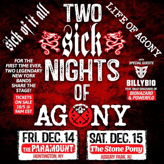 Sick Of It All and Life Of Agony will be performing together for the first time during two special December shows. BillyBio (Biohazard, Powerflo) will serve as support. Here’s the dates: