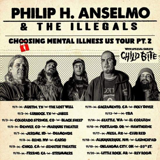 Philip H. Anselmo & The Illegals have announced a fall tour with Child Bite. You can see the dates for that run below.