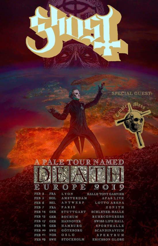 Candlemass have been confirmed as the supporting act for Ghost’s upcoming European tour. You can see the dates for that run below.