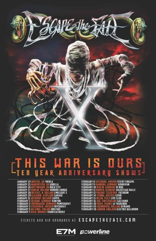 Escape The Fate will be celebrating the 10th anniversary of “This War Is Ours” by performing it in its entirety during a European/UK tour. Craig Mabbitt commented: