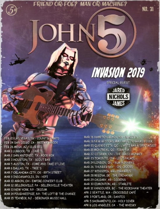 John 5 (Rob Zombie, etc.) has revealed that he will be releasing a new album titled “Invasion“ in 2019. The first single will be a “Scooby-Doo!”-inspired track called “Zoinks!” and a video for it will debut on January 1. The clip was directed by Matt Zane and it will feature animation from Brett Broggs (“Frozen”, “Wreck-It Ralph”, etc.) and voice acting from Nikki Sixx (Mötley Crüe, etc.), Susan Olsen (“The Brady Bunch”, etc.) and Fred Coury. In other news, John 5 has also announced a tour with Jared Nichols James.