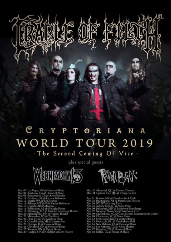 Cradle Of Filth have announced a headlining North American tour. Wednesday 13 and Raven Black will serve as support. Dani Filth commented: