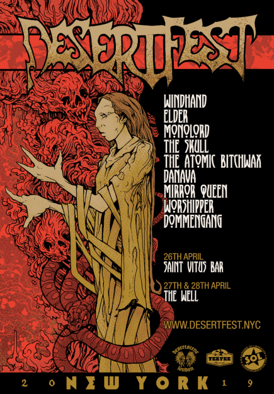 Windhand, Elder, Monolord, The Skull, The Atomic Bitchwax, Danava, Mirror Queen, Worshipper, and Dommengang have all been booked for Desertfest New York. The event will take place at Saint Vitus Bar (April 26) and The Well (April 27-28) in Brooklyn, NY.