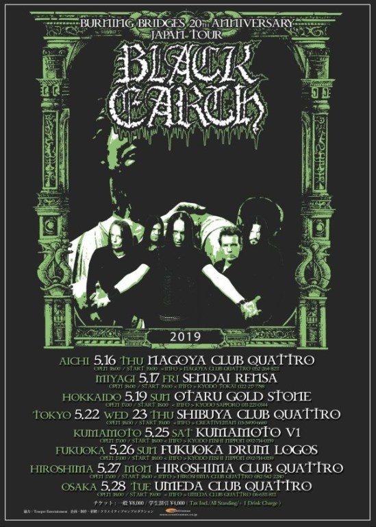 Black Earth, the band featuring original Arch Enemy members Johan Liiva, Michael Amott, and Christopher Amott, along with current Arch Enemy members Daniel Erlandsson and Sharlee D’Angelo, will be celebrating the 20th anniversary of “Burning Bridges” on a Japanese tour. Here’s the dates: