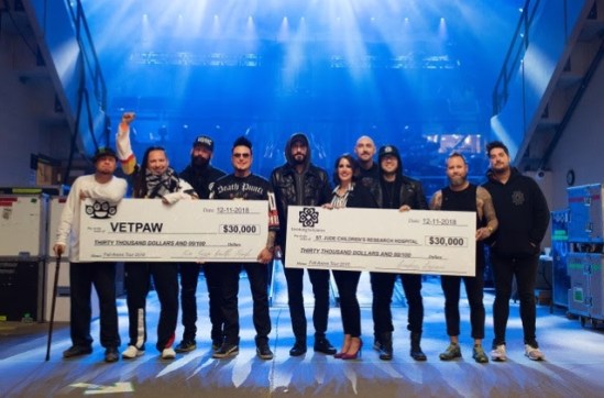 Following the fall leg of their co-headlining tour, Five Finger Death Punch and Breaking Benjamin donated a portion of their ticket sales to two charities. Five Finger Death Punch chose to donate $30,000 to VETPAW (Veterans Empowered to Protect African Wildlife), while Breaking Benjamin chose to donate $30,000 to St. Jude Children’s Research Hospital. This news comes after the bands previously donated $190,000 from their summer tour to charity.