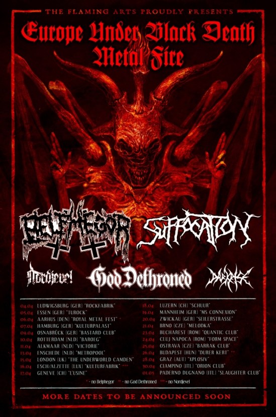 Suffocation and Belphegor have announced a co-headlining European tour. God Dethroned, Nordjevel, and DarkRise will serve as support.