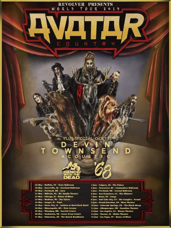 Avatar have announced a headlining North American tour. Devin Townsend (acoustic), Dance With The Dead, and ’68 will serve as support.