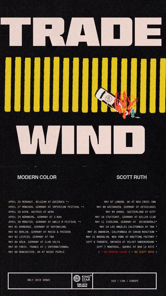 Trade Wind (Stick To Your Guns, Stray From The Path, etc.) have announced a headlining European/UK tour. Modern Color and Scott Ruth will serve as support.