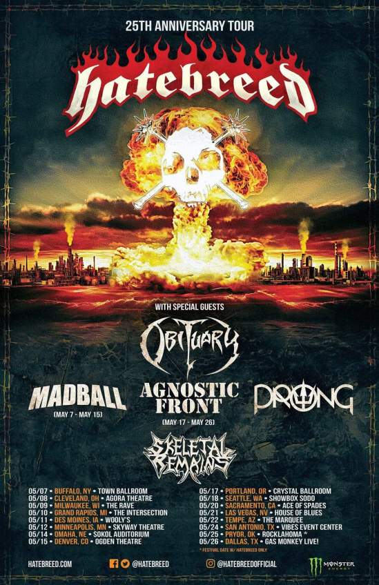 Hatebreed have added a second leg to their 25th anniversary tour. Obituary, Madball (select dates), Agnostic Front (select dates), Prong, and Skeletal Remains will serve as support.