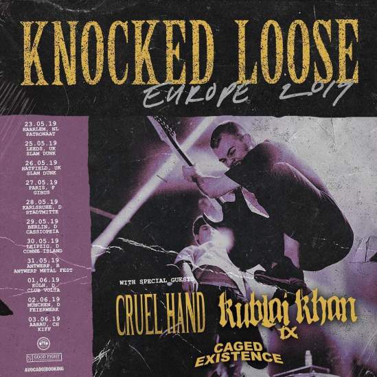 Knocked Loose have announced a European tour with Cruel Hand, Kublai Khan, and Caged Existence. Here’s the dates: