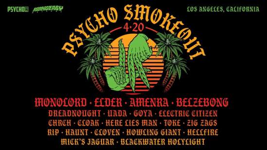 The lineup has been revealed for the inaugural Psycho Smokeout festival. The event will take place at Catch One in Los Angeles, CA on April 20 and it will feature the following: Monolord, Elder, Amenra, Belzebong, Dreadnought, UADA, Goya, Electric Citizen, Chrch, Cloak, Here Lies Man, Toke, Rip, Zig Zigs, Haunt, Cloven, Howling Giant, Hellfire, Mick’s Jaguar, and Blackwater Holylight.