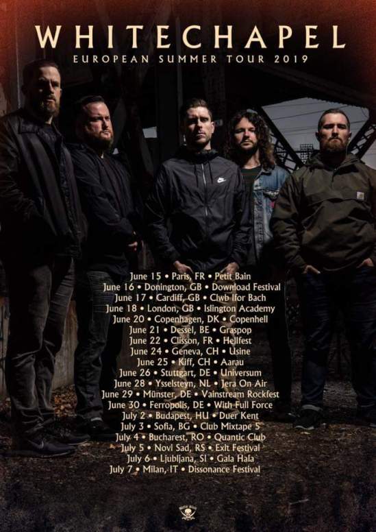 Whitechapel have announced a summer European/UK tour. The band will be touring in support of their new album “The Valley” (out March 29).