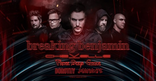 Breaking Benjamin have announced a summer headlining tour. Chevelle, Three Days Grace, Dorothy, and Diamante will serve as support.