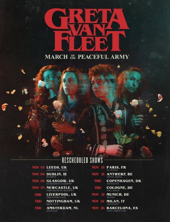 Greta Van Fleet have been forced to reschedule their European tour. The postponment comes as a result of Josh Kiszka suffering from an upper respiratory infection.