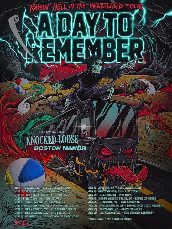 A Day To Remember will be hitting the road on the “Raisin’ Hell In The Heartland Tour.” Knocked Loose and Boston Manor will serve as support.