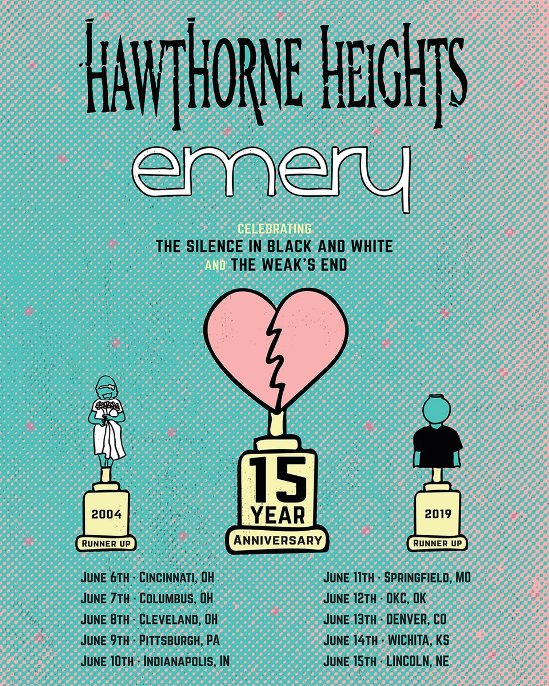 Hawthorne Heights and Emery have announced a June tour together. Hawthorne Heights will be celebrating the 15th anniversary of “The Silence In Black And White” on this run, while Emery will be celebrating the 15th anniversary of “The Weak’s End.” Here’s the dates: