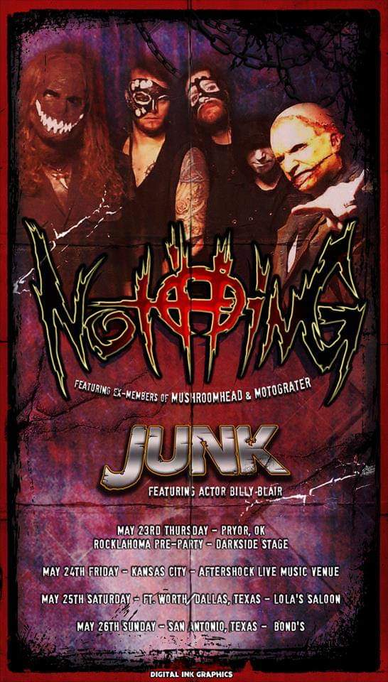 Jeffrey Nothing (ex-Mushroomhead) has announced some May shows with Junk. You can find the dates for that run below. Nothing’s solo band finds him joined by Thomas Church (ex-Mushroomhead), Noah “Shark” Robertson (ex-Motograter/The Browning), etc.