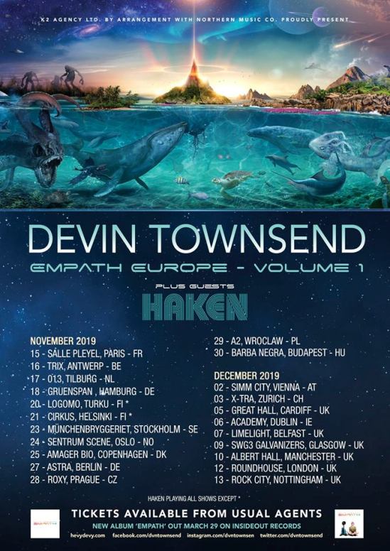Haken have been added to Devin Townsend’s European/UK tour. You can find the dates for that run below. Townsend will be touring in support of his new album “Empath” (out on March 29).
