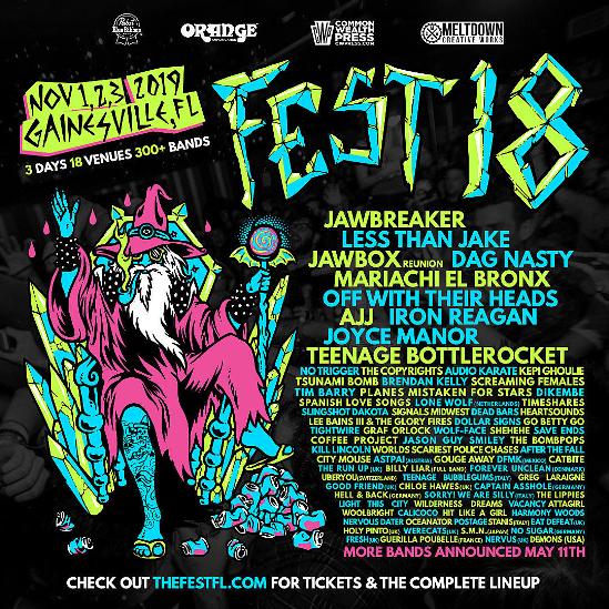 The initial lineup has been revealed for the 18th annual Fest. The event will take place in Gainesville, FL on November 1–3 and it will feature over 300 bands across 18 different venues. Three-day passes are available HERE. One dollar from every pass sold will benefit Grace MarketPlace. The Fest is also partnering with We Are Neutral to help offset their carbon footprint.