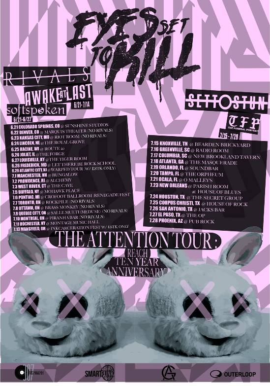 Eyes Set To Kill have announced a summer North American tour. Rivals, Awake At Last, Softspoken, Set To Stun, and The Funeral Portrait will join the band on select dates.