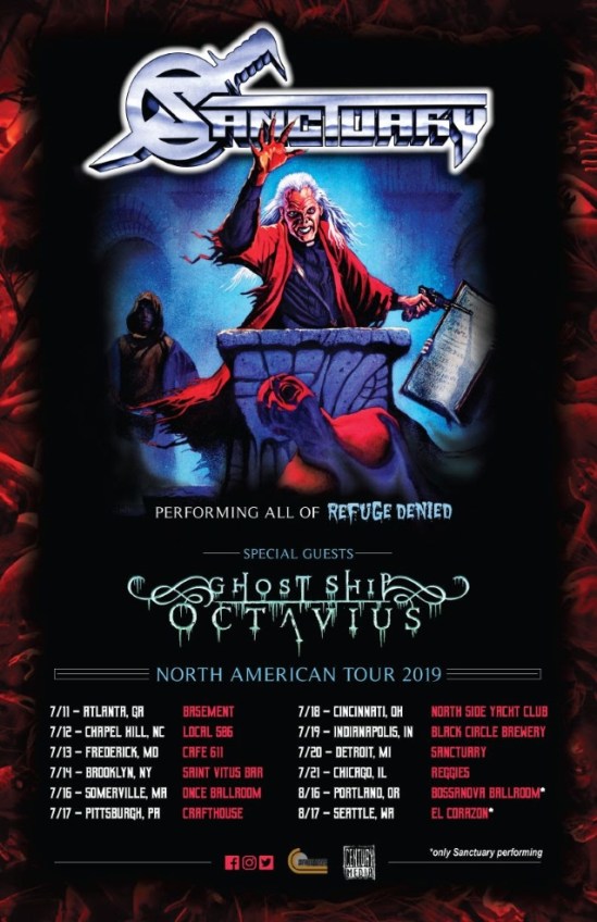 “It is with great pleasure that we can finally announce that Santuary are officially continuing on. This small string of U.S. dates will serve as the starting point of many more things to come. To celebrate the deep history of the band and the connection the fans have with us, we will perform ‘Refuge Denied’ in its entirety, along with other popular songs. Along for this journey, Ghost Ship Octavius will be joining us. 2019 will be an exciting year.”