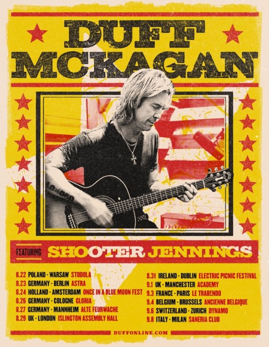 Duff McKagan has announced a European tour in support of his new album “Tenderness” (out May 31). The Guns N’ Roses bassist will be backed by Shooter Jennings and his band. Here’s the dates: