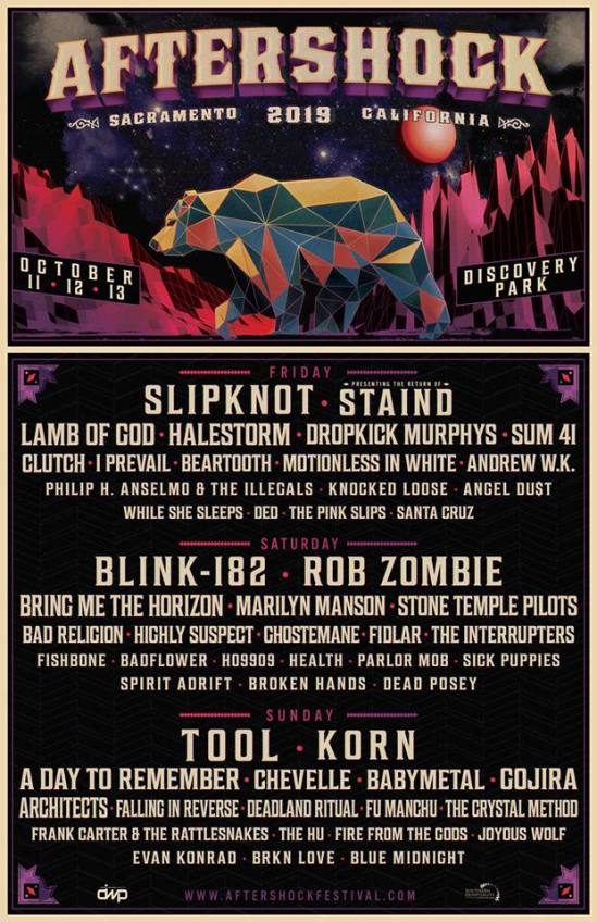 The lineup has been revealed for the 2019 Aftershock Festival. The event will take place at Discovery Park in Sacramento, CA on October 11-13 and it will include the following: