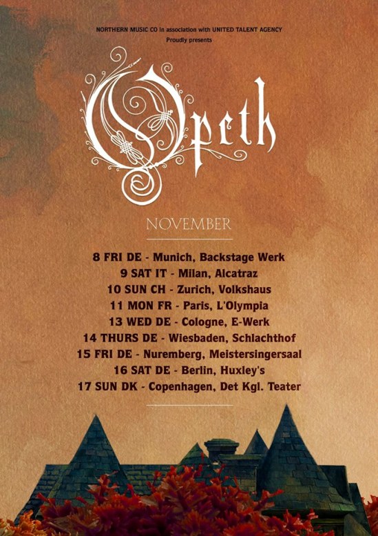 Opeth have announced a November European tour. The band will be touring in support of their upcoming album. Here’s the dates: