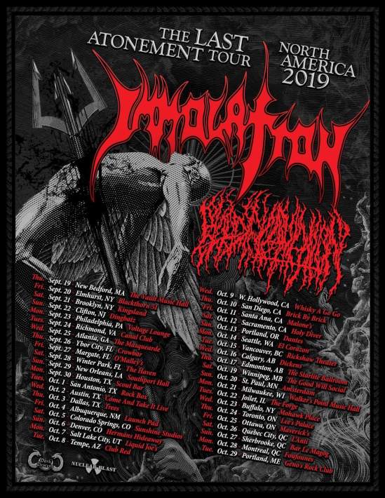 Immolation have announced a fall North American tour. Blood Incantation will serve as support.