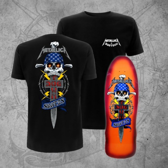 Metallica have joined forces with Dogtown Skateboards to create a new limited edition skateboard deck and t-shirt inspired by 1980’s Dogtown and Metallica skateboard shapes and graphics. You can purchase those HERE. The board shape and airbrush paint were designed by Jim “Red Dog” Muir, the older brother of Mike Muir (Suicidal Tendencies), and they were produced by Professor Schmitt at PS STIX. The art was also blended by Sean Cliver.