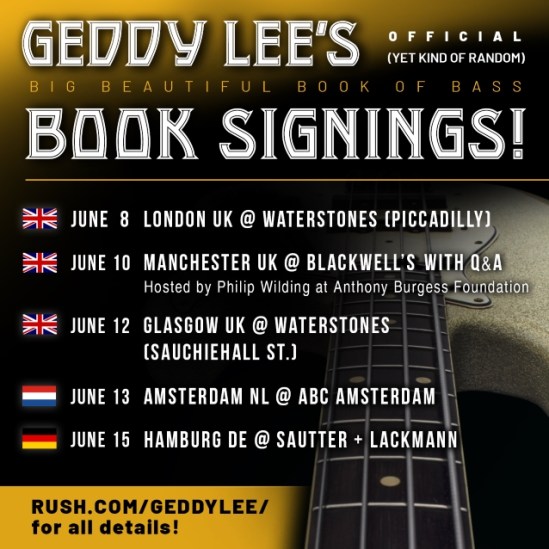 Rush’s Geddy Lee has announced that he will be signing copies of “Geddy Lee’s Big Book Of Beautiful Bass” on a European/UK tour. Fans that buy a ticket will receive a copy of the book for Lee to personalize. He will not sign any other items. Here’s the dates: