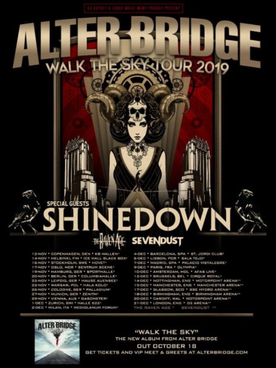 Alter Bridge have announced that their new album “Walk The Sky” will be released on October 18. You can check out the cover art and track listing below: