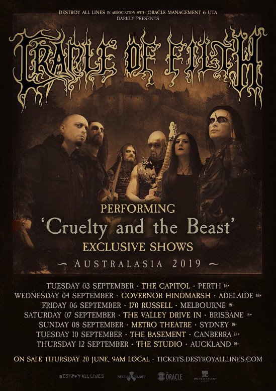 Cradle Of Filth have announced that they will be performing “Cruelty And The Beast” in full on an Australian/New Zealand tour. Here’s the dates: