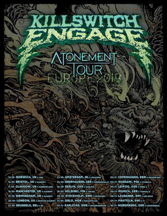 Killswitch Engage have announced a headlining European/UK tour. The band will be touring in support of their new album “Atonement,“ which is set to be released on August 16. If you missed it, the first single from the effort, “Unleashed,” can be found HERE.