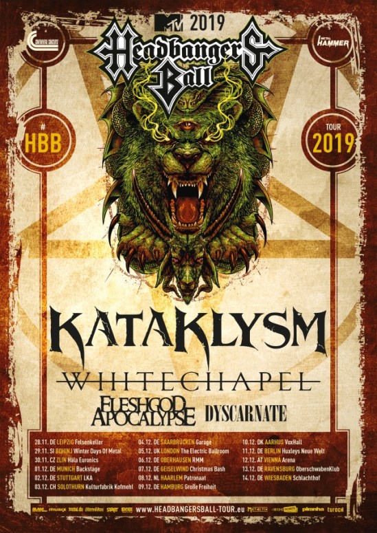 Kataklysm will be headlining the 2019 MTV Headbangers Ball Tour in Europe this year. Whitechapel, Fleshgod Apocalypse, and Dyscarnate will serve as support.