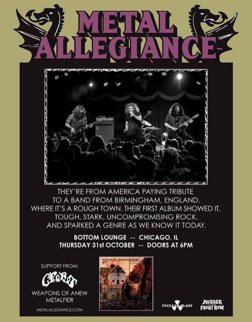 Metal Allegiance have announced that they will be performing Black Sabbath’s 1970 self-titled debut album in full during a special Halloween (October 31) show at the Bottom Lounge in Chicago, IL. However, it’s worth noting that David Ellefson (Megadeth) and Mike Portnoy (ex-Dream Theater, etc.) do not appear to be taking part in this concert. The other core members, Mark Menghi and Alex Skolnick (Testament), will perform with Bobby Blitz (Overkill) and Brann Dailor (Mastodon). Crobot, Weapons Of Anew, and Metalfier will open.