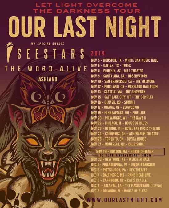 Our Last Night have announced a fall headlining tour. I See Stars, The Word Alive, and Ashland will serve as support.