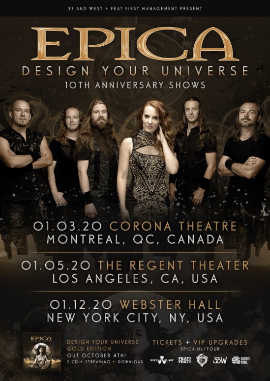 Epica will be celebrating the 10th anniversary of “Design Your Universe” with some special North American shows. Here’s the dates: