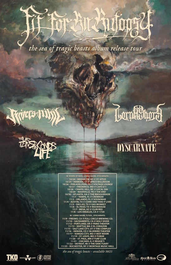 Fit For An Autopsy have officially confirmed that Rivers Of Nihil, Lorna Shore, The Last Ten Seconds Of Life, and Dyscarnate will be joining them on their fall headlining tour. The band will be touring in support of their new album “The Sea Of Tragic Beasts“ (out October 25).