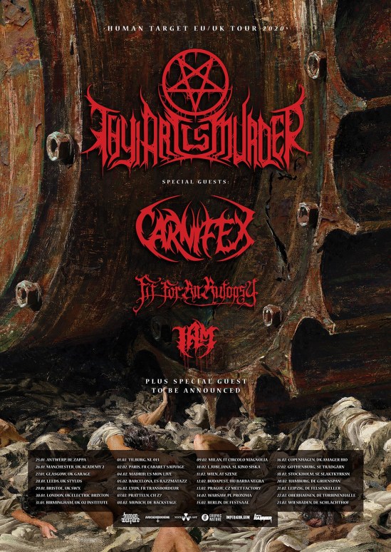 Thy Art Is Murder have announced a 2020 European/UK tour. Carnifex, Fit For An Autopsy, and I AM will open.