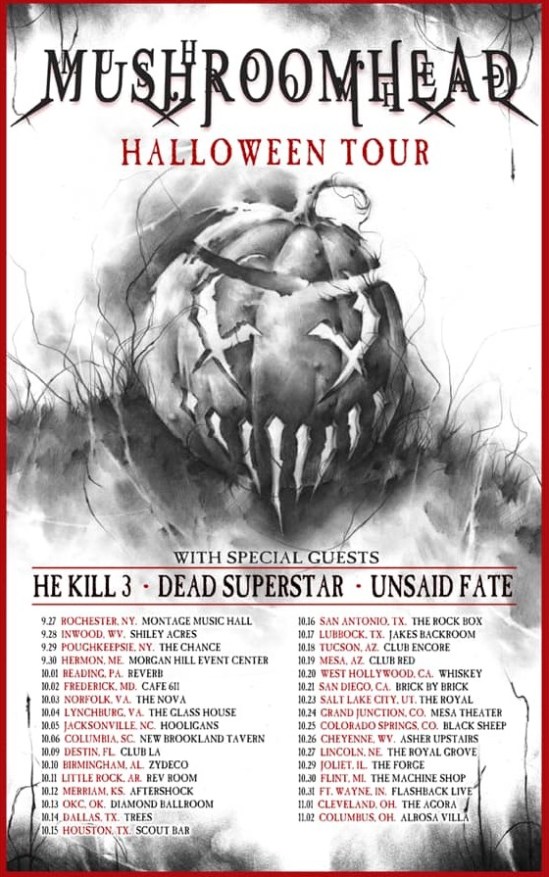 Mushroomhead have announced a fall headlining tour. He Kill 3, Dead Superstar, and UnSaid Fate will open.