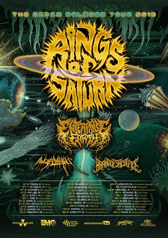 Rings Of Saturn have announced a North American tour with Enterprise Earth, AngelMaker, and Brand Of Sacrifice. The band will be touring in support of their upcoming album “Gidim.” More details for the effort will be revealed next week when the music video for the first single drops.