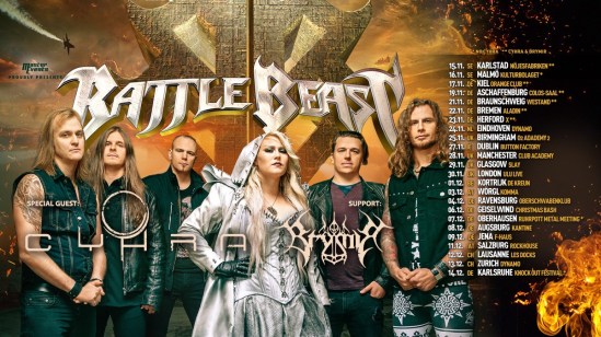 Battle Beast have revealed the supporting acts for their upcoming European/UK tour. Cyhra will join the band on most dates, while Brymir will also perform on select dates.